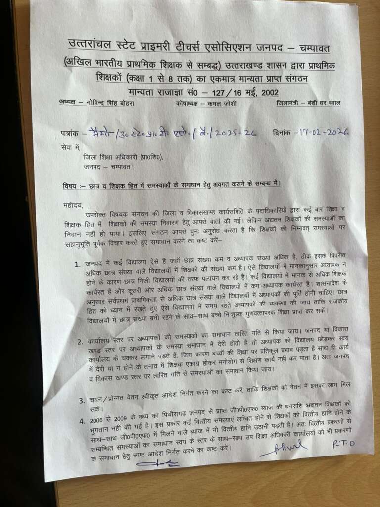 चम्पावत : उत्तरांचल स्टेट प्राइमरी टीचर्स एसोसिएशन की जिला इकाई की बैठक में 10 प्रस्ताव पारित