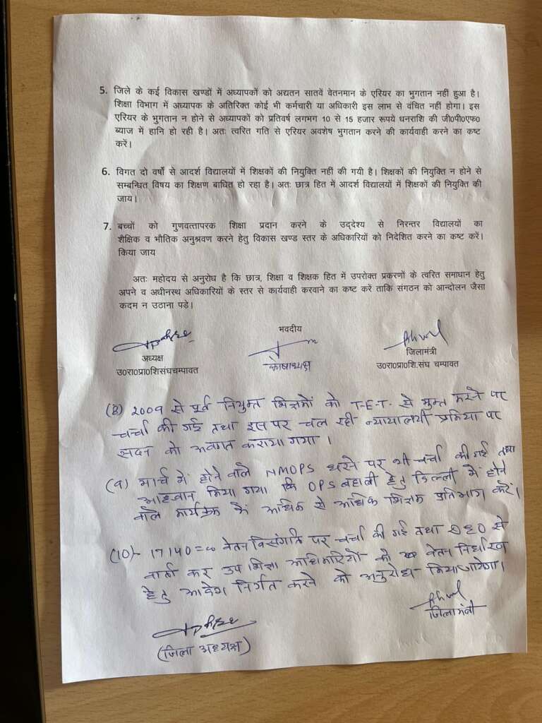 बैठक में 10 प्रस्ताव भी पारित हुए। इन मांगों को लेकर जिला शिक्षाधिकारी को ज्ञापन भी दिया गया। शिक्षकों की समस्याओं के त्वरित समाधान की मांग की गई। कहा गया कि इन मांगों पर तत्काल प्रभावी कदम नहीं उठाए गए, तो संगठन आंदोलन के लिए मजबूर होगा। बैठक में कोषाध्यक्ष कमल जोशी, वरिष्ठ उपाध्यक्ष उत्तम सिंह फर्त्याल, जिला उपाध्यक्ष रूद्र सिंह बोहरा, लोहाघाट के ब्लॉक अध्यक्ष कैलाश सिंह फर्त्याल, चंपावत के ब्लॉक अध्यक्ष कवींद्र सिंह तड़ागी, बाराकोट के ब्लॉक अध्यक्ष रामप्रसाद कालाकोटी, पाटी के ब्लॉक अध्यक्ष प्रकाश चंद्र जोशी, मंत्री हरि विनोद पंत, नवीन चंद्र जुकरिया, चतुर सिंह महरा, सुरेश चंद्र, संजय कुमार, कीर्ति बल्लभ भट्ट, गंगा दत्त भट्ट, हरीश पांडेय, प्रकाश चंद्र गड़कोटी आदि मौजूद रहे।
