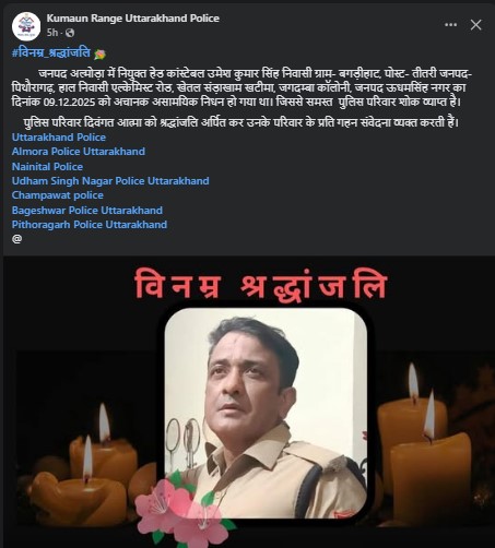अल्मोड़ा : पुलिस कांस्टेबल की खाई में गिरने से हुई मौत, रात भर खाई में पड़ा रहा शव