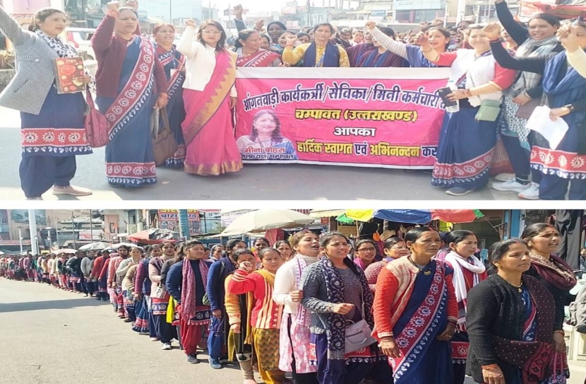 चम्पावत में आंगनबाड़ी कार्यकर्ताओं ने किया जोरदार प्रदर्शन, न्यूनतम मानदेय 25 हज़ार करने की मांग