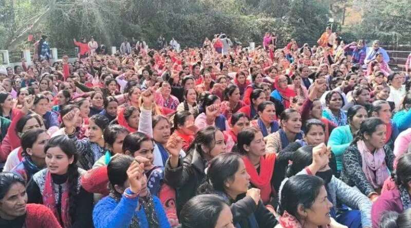 चम्पावत में आंगनबाड़ी कार्यकर्ताओं ने किया जोरदार प्रदर्शन, न्यूनतम मानदेय 25 हज़ार करने की मांग