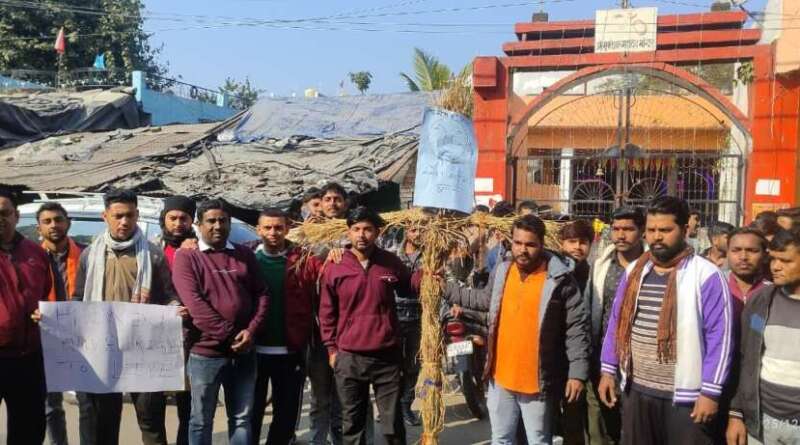 टनकपुर में बजरंग दल ने फूंका बांग्लादेश सरकार का पुतला