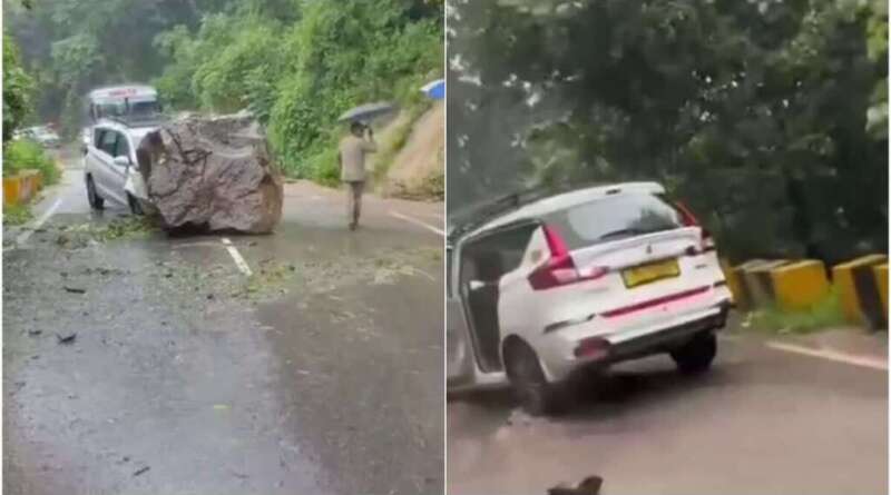 स्वास्थ्य विभाग की टीम की कार पर पहाड़ से गिरा बोल्डर, हरिद्वार से नैनीताल हाईकोर्ट जाते समय हुआ हादसा