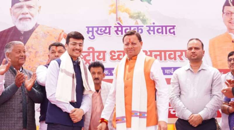 चम्पावत। गांधी चौक में आयोजित मुख्य सेवक संवाद एवं राष्ट्रीय ध्वज अनावरण कार्यक्रम के दौरान मुख्यमंत्री पुष्कर सिंह धामी ने संघ लोक सेवा आयोग (UPSC) परीक्षा में अखिल भारतीय स्तर पर 69वीं रैंक प्राप्त करने वाले जनपद के विकास खंड बाराकोट के छुलापे गांव के अनुज पंत को शॉल ओढ़ाकर सम्मानित किया।