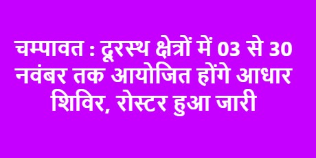 चम्पावत : दूरस्थ क्षेत्रों में 03 से 30 नवंबर तक आयोजित होंगे आधार शिविर, रोस्टर हुआ जारी