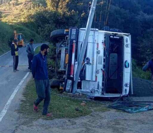 चम्पावत : डंपर बिजली के खंभे से टकरा कर पलटा, बिजली हुई गुल, बड़ा हादसा टला