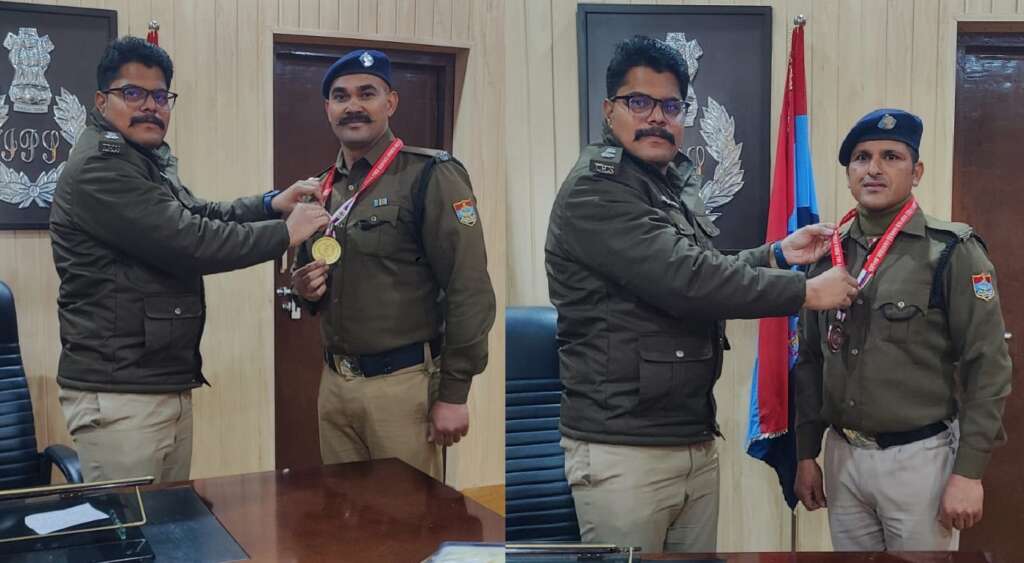 चम्पावत। राजस्थान के उदयपुर में दिनांक गत 27 जनवरी से 31 जनवरी तक आयोजित प्रथम अखिल भारतीय अग्निशमन सेवा खेल सम्मेलन–2026 में विभिन्न खेल प्रतियोगिताओं का आयोजन किया गया। इस प्रतिष्ठित राष्ट्रीय प्रतियोगिता में जनपद चम्पावत में तैनात फायर मैन महेंद्र सिंह रावत ने आर्म रेसलिंग प्रतियोगिता में 90 कीलोग्राम वर्गभार में उत्कृष्ट प्रदर्शन करते हुए स्वर्ण पदक तथा फायर सिर्विस चालक नीरज जोशी ने आर्म रेसलिंग प्रतियोगिता मे 68 किलोग्राम वर्गभार मे कांस्य पदक प्राप्त कर जनपद चम्पावत एवं उत्तराखंड पुलिस का नाम राष्ट्रीय स्तर पर गौरवान्वित किया है। इस उपलब्धि पर एसपी अजय गणपति ने दोनों कार्मिकों को बधाई देते हुए उनके उज्ज्वल भविष्य की शुभकामनाएं दीं। साथ ही संपूर्ण चम्पावत पुलिस परिवार ने भी हर्ष व्यक्त किया गया।