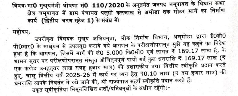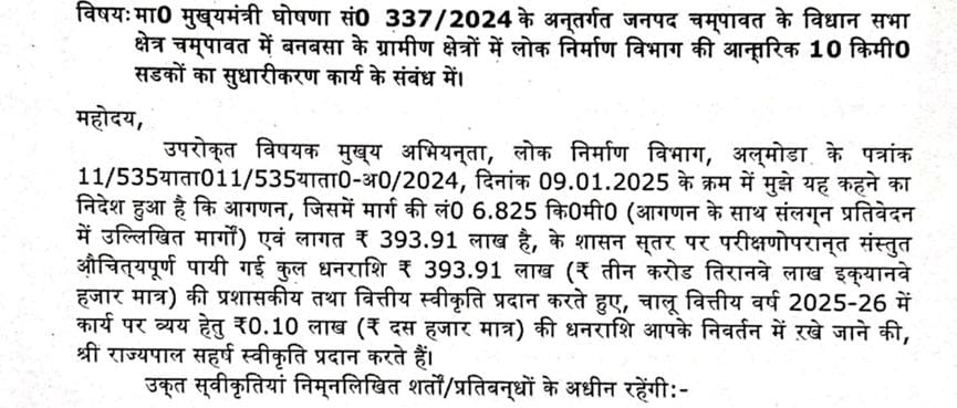 अमोड़ा–पल्सो कलजाख मोटर मार्ग को 169.17 लाख की स्वीकृति, 393.91 लाख से बनबसा की सड़कों में आएगी नई चमक