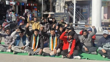 चम्पावत : मनरेगा का नाम बदले जाने के विरोध में उपवास पर बैठे कांग्रेसी
