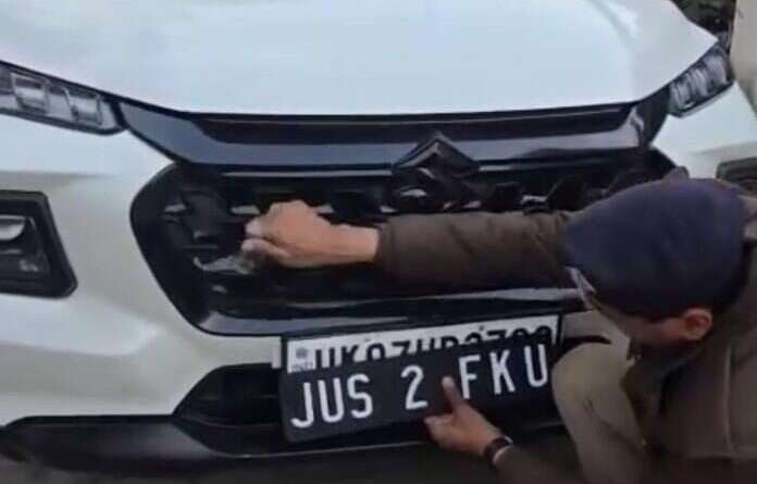 दिनांक 08 फरवरी 2026 को थाना बसंत विहार क्षेत्र स्थित एक स्कूल में आयोजित फेयरवेल पार्टी में एक नाबालिग छात्र द्वारा वाहन लाया गया था, जिस पर नंबर प्लेट के स्थान पर आपत्तिजनक व भ्रामक शब्द लिखे हुए थे। उक्त वाहन का वीडियो सोशल मीडिया पर प्रसारित होने के उपरांत थाना बसंत विहार पुलिस द्वारा तत्काल संज्ञान लिया गया। वरिष्ठ पुलिस अधीक्षक देहरादून महोदय के निर्देशानुसार पुलिस टीम द्वारा वाहन की तलाश कर उसे थाने लाया गया एवं MV Act के अंतर्गत सीज किया गया।