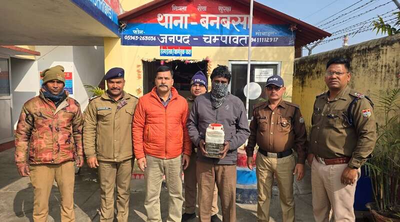 ड्रग्स फ्री देवभूमि अभियान के तहत एसपी अजय गणपति ने मादक पदार्थों की तस्करी करने वाले अपराधियों/असामाजिक तत्वों के विरुद्ध प्रभावी वैधानिक कार्यावही किए जाने को लेकर समस्त प्रभारी निरीक्षक/थानाध्यक्ष/प्रभारी एसओजी को आदेशित किया है। उक्त के क्रम में रविवार चार जनवरी को सीओ वंदना वर्मा के निर्देशन में प्रभारी एसओजी कमलेश भट्ट व उनि निर्मल सिंह लटवाल थाना बनबसा के नेतृत्व में एसओजी टीम एंव बनबसा पुलिस टीम द्वारा संयुक्त रूप से सूचना संकलन व कुशल सुरागरसी पतारसी कर संदिग्धों पर सतर्क दृष्टि रखते हुए चैकिंग के दौरान धनुष पुल से चांदनी दोधारा नेपाल जाने वाले जंगल मार्ग पर अभियुक्त हसमत अली उर्फ मझले पुत्र स्व. बाबू निवासी इस्लामनगर वार्ड नंबर 03 थाना खटीमा जिला ऊधमसिंहनगर उम्र 47 वर्ष के कब्जे से 2.046 किलोग्राम अवैध चरस बरामद कर गिरफ्तार किया गया।