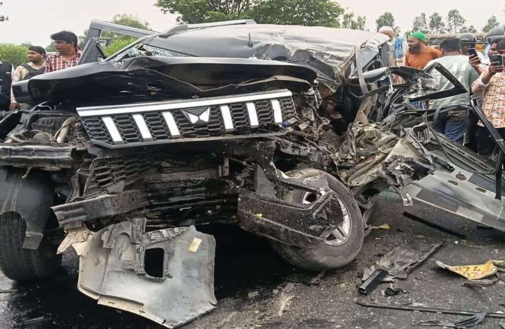 खड़े टैंकर में पीछे से घुसी बोलेरो, पांच की मौत, कटर मशीन से गाड़ी को काटकर शवों को निकाला