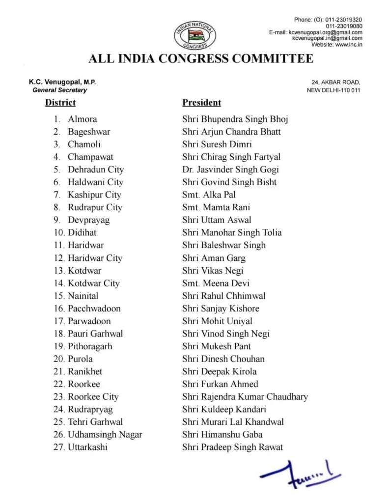 गणेश गोदियाल को फिर उत्तराखंड कांग्रेस की कमान: हरक और प्रीतम को बड़ी जिम्मेदारी, जिला अध्यक्षों की भी घोषणा