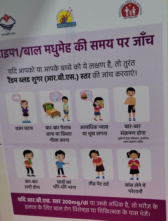 मुख्य चिकित्साधिकारी डॉ. देवेश चौहान ने इस अवसर पर जनपदवासियों से अपील की कि वे जिले की सभी चिकित्सा इकाइयों एवं आयुष्मान आरोग्य मंदिरों में उपलब्ध मधुमेह जांच सुविधा का लाभ लें। उन्होंने कहा ‘टाइप-1 / बाल मधुमेह से ग्रसित प्रत्येक रोगी का जिला चिकित्सालय में पंजीकरण अनिवार्य है, ताकि उन्हें समय पर किट और दवाइयाँ उपलब्ध कराई जा सकें।’ कार्यक्रम में एसीएमओ डॉ. इंद्रजीत पांडेय, डॉ. प्रदीप बिष्ट (रेडियोलॉजिस्ट), डॉ. जितेन्द्र जोशी (बाल रोग विशेषज्ञ, एसडीएच टनकपुर), जिला सलाहकार ममता मिश्रा, प्रवीण भट्ट, नर्सिंग अधिकारी बबीता, सीएचओ, एएनएम, आशा कार्यकर्ताएँ एवं अन्य स्वास्थ्य कर्मी उपस्थित रहे।