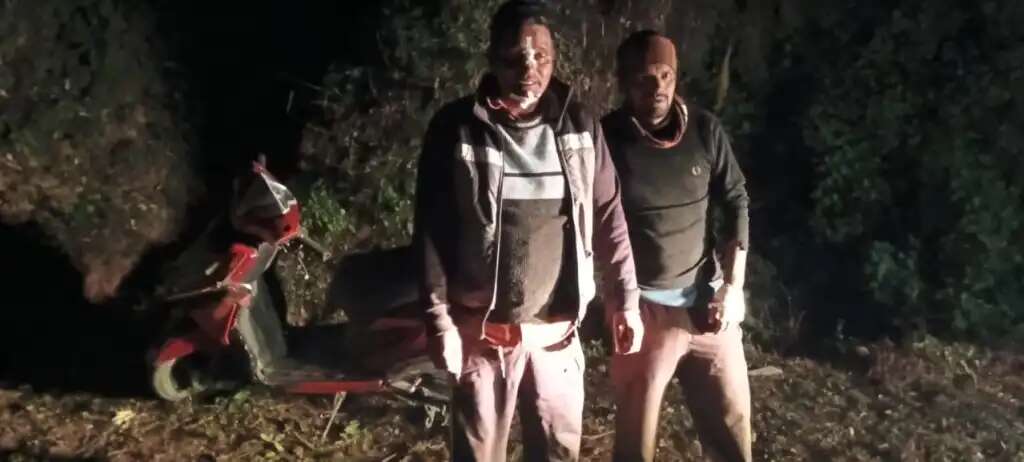 गोली गांव के बिजली विभाग के लाइनमैन श्याम सिंह व यशपाल सिंह स्कूटी से बिरगुल से गोली लौट रहे थे। श्याम सिंह ने बताया है कि शाम करीब छह बजे तिमलानी बैंड पर सड़क किनारे छिपे तेंदुए ने अचानक गुर्राते हुए उनकी स्कूटी पर झपट्टा मारा। डर के मारे वे बेहोश होकर सड़क पर गिर पड़े। इससे दोनों के पैर व मुंह पर गंभीर चोटें आईं। आसपास के लोग शोर सुनकर मौके पर पहुंचे और घायलों को संभाला। ग्रामीणों ने वन विभाग को सूचना दे दी है। ग्रामीणों का कहना है कि दुकानों के पास पहली बार ऐसी घटना घटी है। गांव में बच्चों व महिलाओं में भारी दहशत का माहौल है। बताया गया है कि श्याम सिंह व यशपाल सिंह के पैर व मुंह पर चोटें आई हैं। रेंजर हिमालय सिंह टोलिया ने बताया है कि घटना की सूचना मिली है। वन विभाग ने मामले की जांच शुरू कर दी है। वहीं ग्रामीणों ने तेंदुए को पकड़ने की मांग की है।