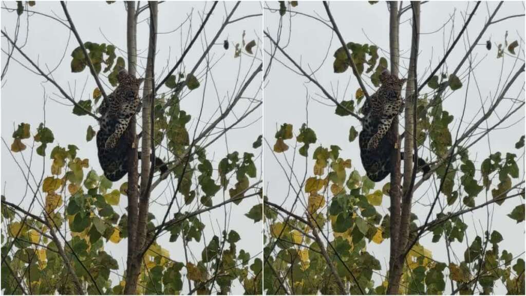 चार घंटे तक पेड़ की टहनियों में फंसा रहा गुलदार, बमुश्किल हुआ रेस्क्यू