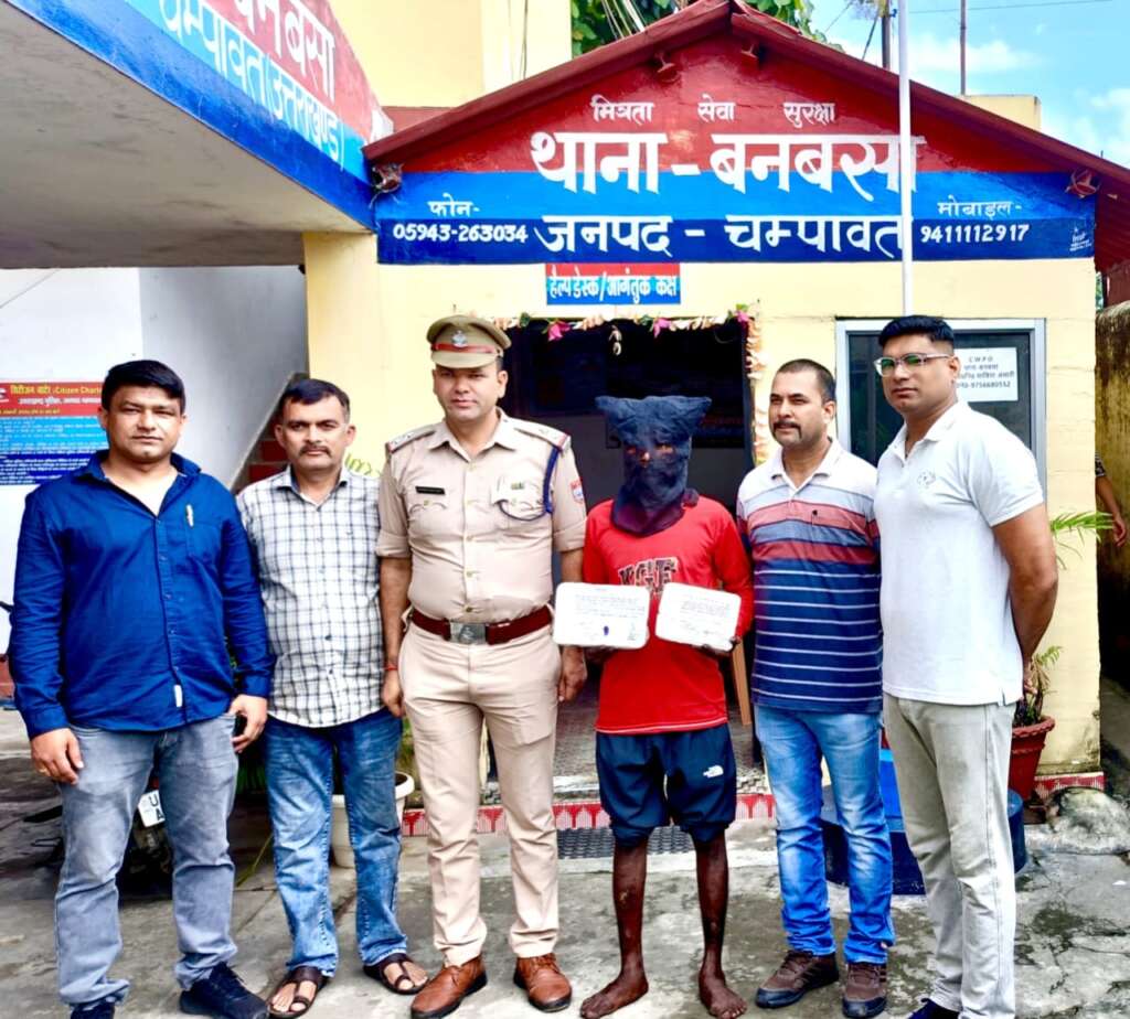 एसपी अजय गणपति ने मादक पदार्थों की तस्करी करने वाले व्यक्तियों के विरुद्ध प्रभावी वैधानिक कार्यवीही किये जाने को लेकर समस्त प्रभारी निरीक्षक / थानाध्यक्ष को आदेशित किया है। निर्देशों के क्रम में मंगलवार को सीओ वन्दना वर्मा के निर्देशन में एसओजी प्रभारी कमलेश भट्ट व थानाध्यक्ष बनबसा सुरेन्द्र सिंह कोरंगा के नेतृत्व में एसओजी व थाना पुलिस टीम की सयुंक्त कार्यवाही में चैकिंग के दौरान अभियुक्त रवि उर्फ गन्ठा पुत्र स्व किशनपाल मुखिया, निवासी ग्राम बिरियातार, थाना जलालाबाद, जिला शहांजाहपुर, उत्तर प्रदेश हाल निवासी वार्ड नंबर 05 मीना बाजार बनबसा को 112 ग्राम स्मैक ,01 बीड़ी का बन्डल,01 सिल्वर पेपर,01 माचिस,01 चैचर ( स्मैक पीने के लिये इस्तेमाल) के साथ धनुष पुल चौकी के निकट से गिरफ्तार किया ग़या।