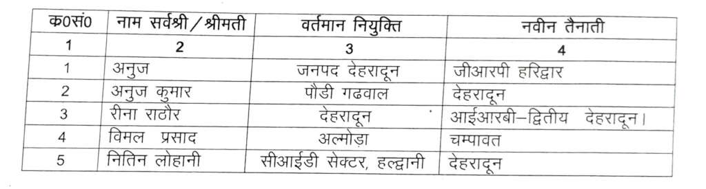 उत्तराखण्डदेहरादूननवीनतम उत्तराखंड में 10 निरीक्षक पदोन्नत होकर बने पुलिस उपाधीक्षक, पांच सीओ का हुआ तबादला 2 April 2026 champawatkhabar ख़बर शेयर करें - पांच पुलिस उपाधीक्षकों का तत्काल प्रभाव से हुआ तबादला Share this News:Click to share on WhatsApp (Opens in new window)Click to share on Facebook (Opens in new window)Click to share on Telegram (Opens in new window)Click to share on Twitter (Opens in new window)Like this:Like Loading...