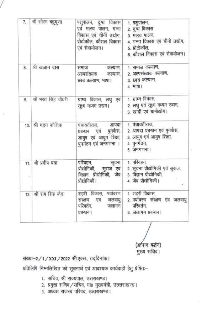 धामी कैबिनेट के पांचों नए मंत्रियों को आवंटित किए गए विभाग, कैड़ा को मिला शहरी विकास विभाग