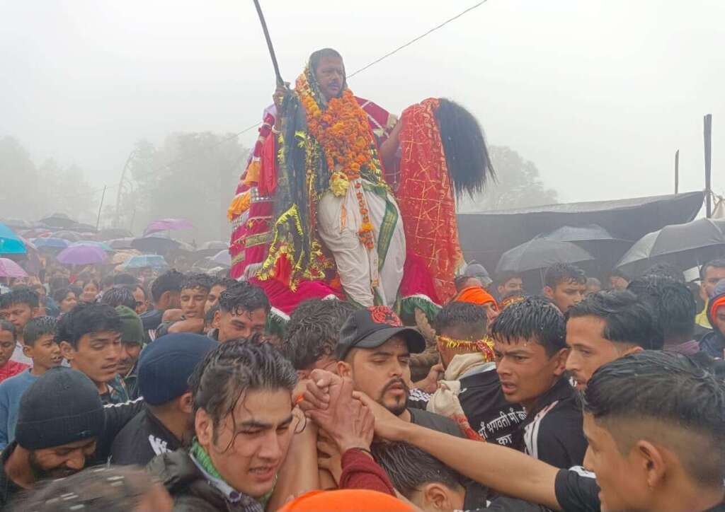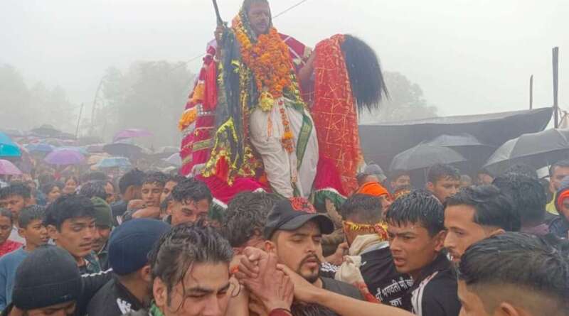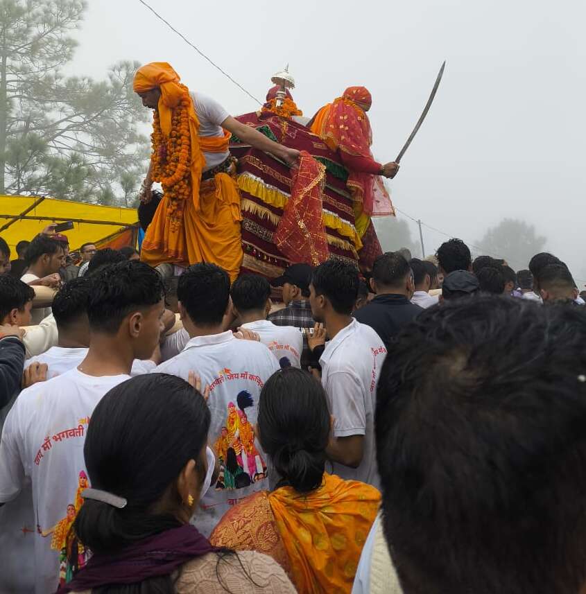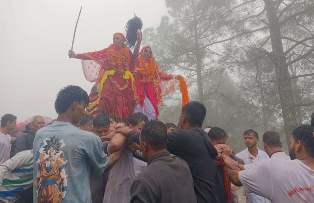बाराकोट/चम्पावत। बाराकोट के लड़ीधूरा महोत्सव के दौरान मंगलवार 7 अक्टूबर को बारिश के बीच काकड़ और बाराकोट गांव से देवी रथों को जयकारों के साथ कठिन रास्तों से लड़ीधूरा मंदिर लाया गया। काकड़ से रस्सों के सहारे पहला रथ अपरान्ह 3:20 बजे लड़ीधूरा मंदिर पहुंचा। जिसमें कालिका के रूप में कल्याण सिंह अधिकारी विराजमान थे। जबकि दूसरा रथ बाराकोट से अपरान्ह 3:35 बजे मंदिर पहुंचा। इस रथ में भगवती के रूप में गुड्डी फर्त्याल एवं कालिका के रूप में प्रताप सिंह विराजमान थे। रथों के मंदिर में पहुंचते ही लड़ीधूरा की चोटी मां के जयकारों से गूंज उठी।