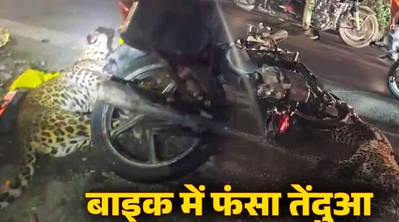 तेज रफ्तार बाइक से टकराया तेंदुआ, काफी देर तक फंसा रहा, वीडियो देखें…