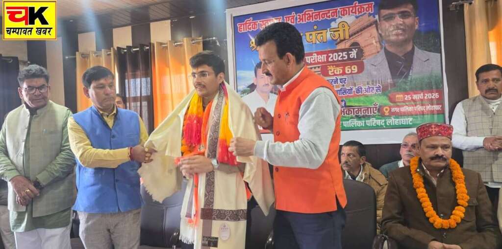 पालिका सभागार में आयोजित नागरिक अभिनंदन में नगर पालिका अध्यक्ष गोविंद वर्मा ने अनुज पंत को स्मृति चिन्ह भेंट करते हुए कहा कि इतनी कम उम्र में इतनी बड़ी उपलब्धि हासिल कर उन्होंने पूरे जनपद को गौरवान्वित किया है। भाजपा प्रदेश कार्यकारिणी सदस्य सतीश चंद्र पांडेय ने कहा कि अनुज की सफलता क्षेत्र के युवाओं के लिए प्रेरणा और ऊर्जा का स्रोत बनेगी। कार्यक्रम में युवाओं के भविष्य को तरास रहे संजय देव को भी सम्मानित किया गया, जो वर्षों से गरीब छात्र-छात्राओं के भविष्य को संवारने में जुटे हैं। इस दौरान अनुज के पिता दिनेश पंत और माता मीना पंत का भी माल्यार्पण कर अभिनंदन किया गया।