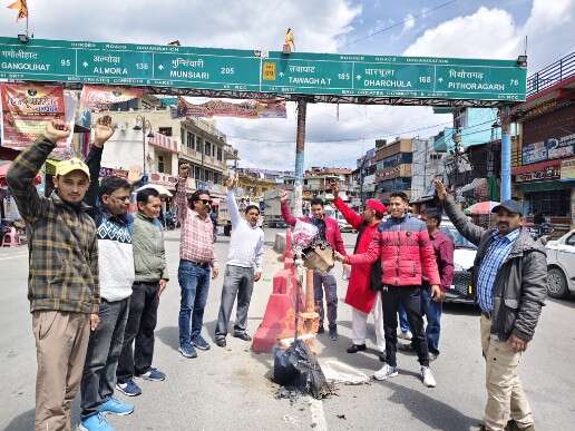 मीडिया कर्मियों ने फूंका खटीमा के भाजपा नेता का पुतला, मुकदमा निरस्त करने की मांग