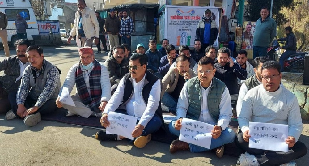लोहाघाट में वन-वे व्यवस्था के खिलाफ विधायक अधिकारी ने दिया धरना