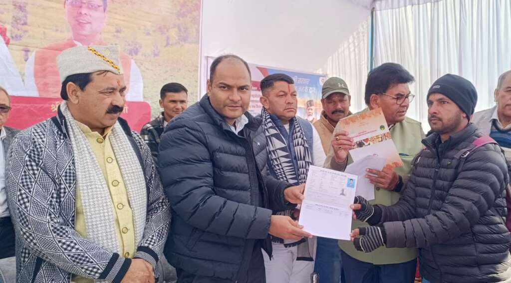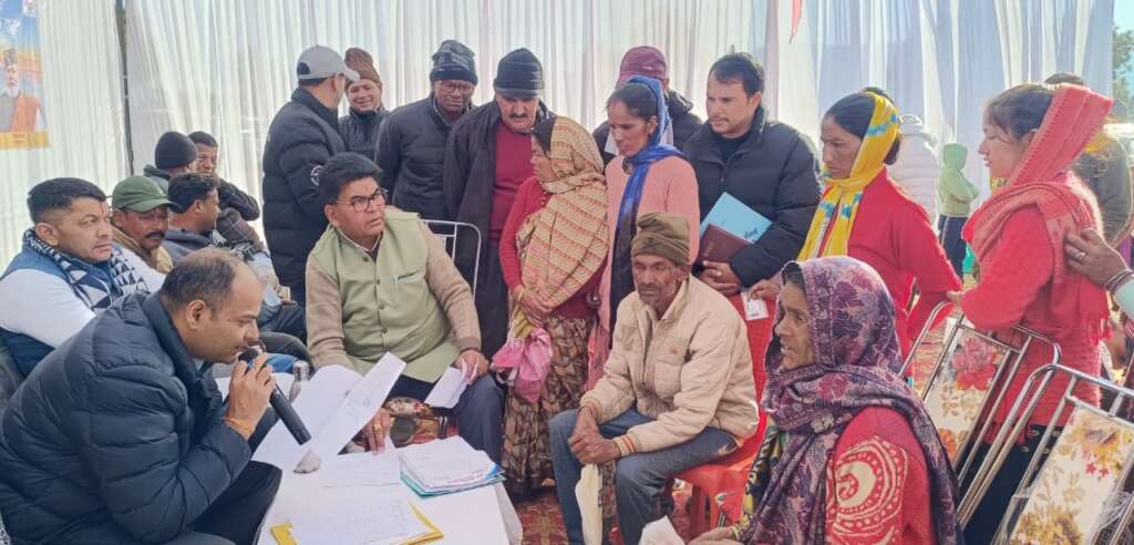 चम्पावत। जनपद चम्पावत की न्याय पंचायत वल्सों स्थित पीएम अटल उत्कृष्ट राजकीय इंटर कॉलेज मैदान, चौमेल में राज्य सरकार की महत्त्वाकांक्षी एवं जनोन्मुखी पहल ‘जन-जन की सरकार, जन-जन के द्वार’ के अंतर्गत बहुद्देशीय जनसेवा शिविर का आयोजन किया गया। शिविर की अध्यक्षता जिलाधिकारी मनीष कुमार ने की। शिविर के दौरान ग्रामीणों द्वारा कुल 97 से अधिक शिकायत पत्र सीधे जिलाधिकारी को सौंपे गए, जिन पर त्वरित संज्ञान लेते हुए संबंधित विभागों को मौके पर ही आवश्यक निर्देश दिए गए।