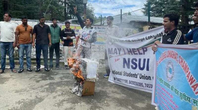 लोहाघाट में NSUI ने कुलपति व शिक्षा मंत्री का पुतला फूंका