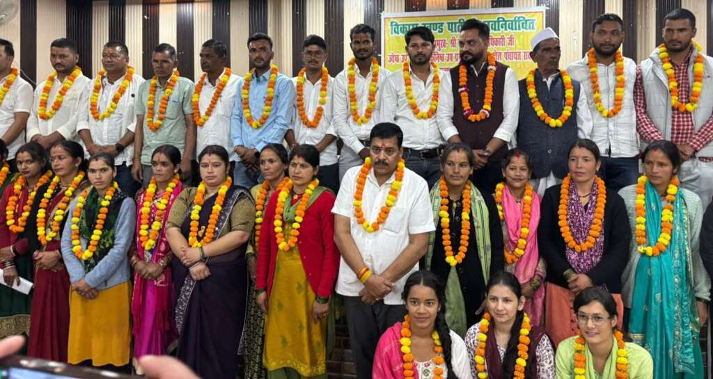 पाटी/चम्पावत। पाटी विकासखंड सभागार में नव निर्वाचित ब्लॉक प्रमुख और बीडीसी सदस्यों को पद एवं कर्तव्यनिष्ठा की शपथ दिलाई गई। नव निर्वाचित ब्लॉक प्रमुख शंकर सिंह अधिकारी को चम्पावत के जिला विकास अधिकारी दिनेश सिंह दिगारी ने शपथ ग्रहण कराई। ज्येष्ठ उप प्रमुख खड़क सिंह और कनिष्ठ उप प्रमुख नेहा बगौटी के अलावा अन्य सदस्यों ने भी शपथ ली।