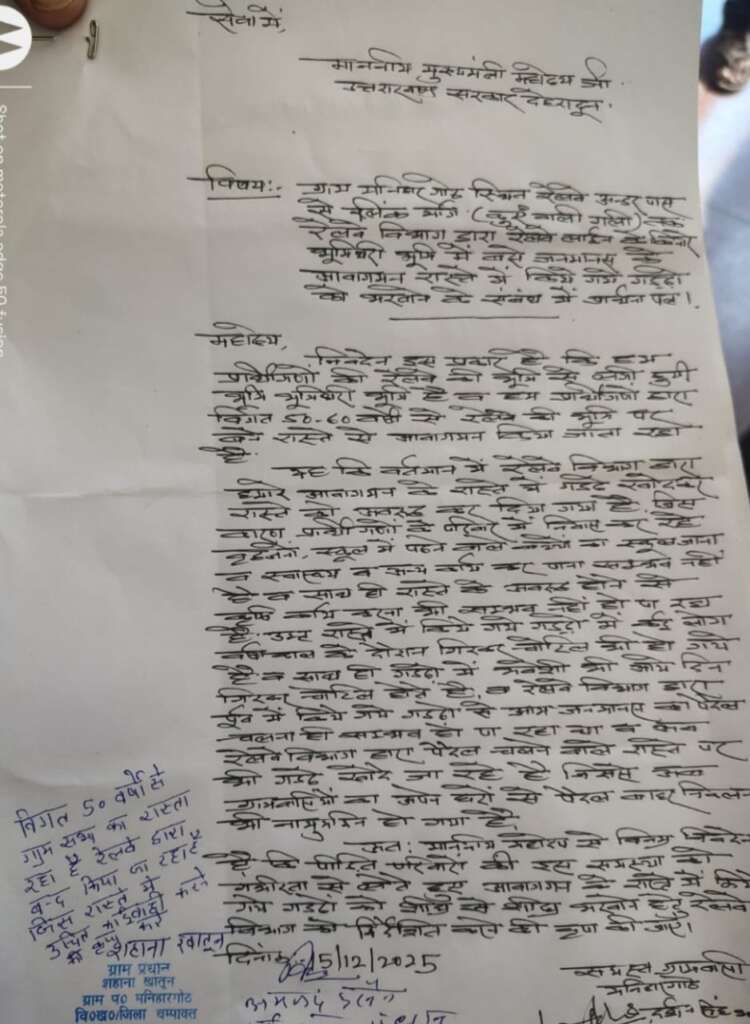 टनकपुर : आवाजाही वाले मार्ग को गड्ढे खोद कर रेलवे ने किया बंद, ग्रामीणों ने सीएम को ज्ञापन भेजा