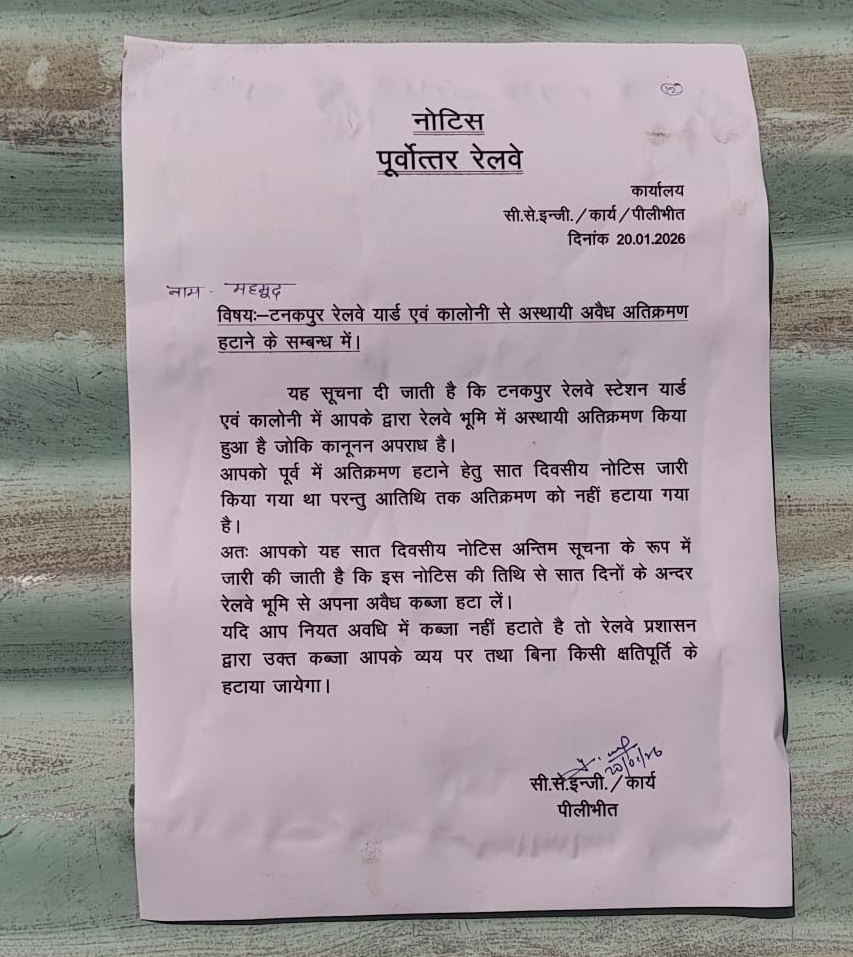 टनकपुर में अतिक्रमण हटाने के लिए रेलवे ने 58 नोटिस चस्पा किए, लोगों में मचा हड़कंप