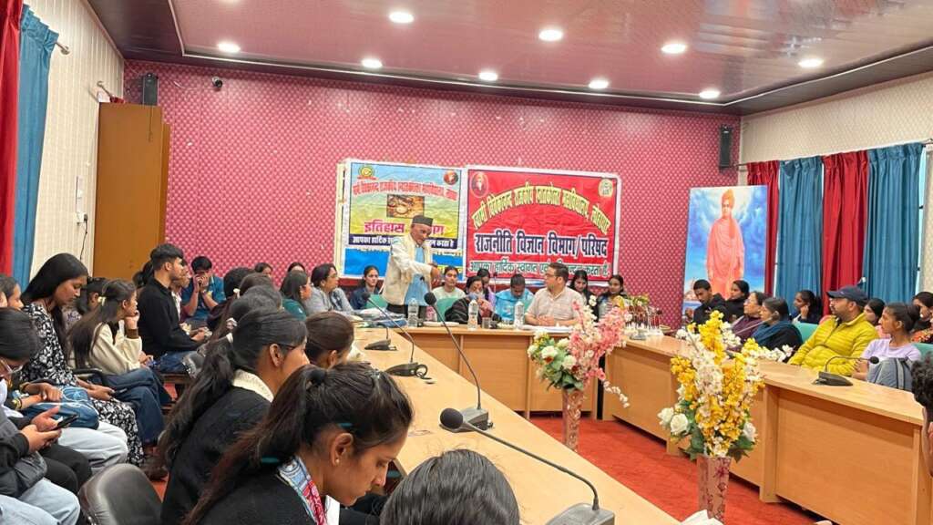 लोहाघाट/चम्पावत। स्वामी विवेकानन्द पीजी कॉलेज लोहाघाट में इतिहास और राजनीति विज्ञान परिषद् की आयोजित ओर से विभिन्न प्रतियोगिताओं का आयोजन किया गया। कार्यक्रम के मुख्य अतिथि सेवानिवृत्त प्राध्यापक बंशीधर कलौनी रहे। अध्यक्षता प्राचार्य प्रोफेसर (डॉ) संगीता गुप्ता प्राचार्य ने की।