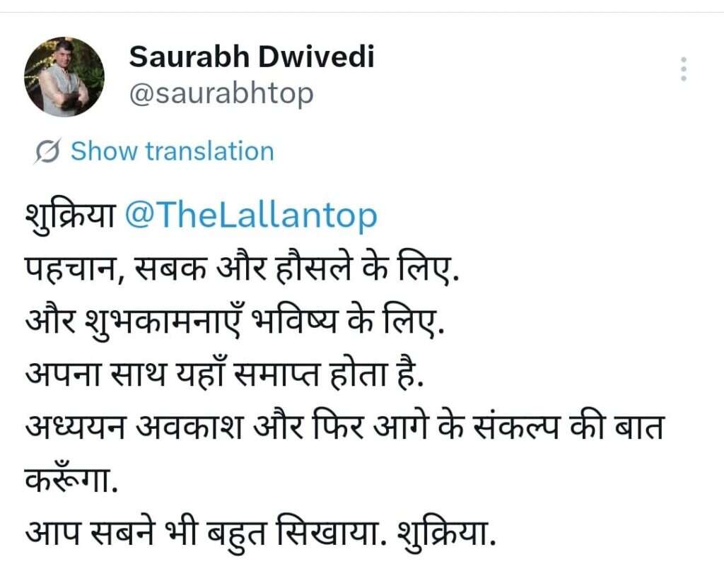 लल्लनटॉप और इंडिया टुडे के संपादक पद से सौरभ द्विवेदी की विदाई!