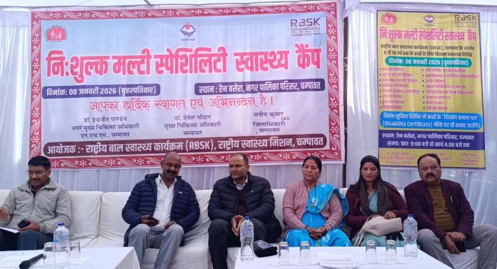 चम्पावत। बच्चों के स्वास्थ्य संरक्षण एवं समग्र विकास की दिशा में एक महत्वपूर्ण पहल करते हुए नगरपालिका परिसर स्थित रैन बसेरा में राष्ट्रीय बाल स्वास्थ्य कार्यक्रम (RBSK) के अंतर्गत 0 से 18 वर्ष तक के बच्चों के लिए निःशुल्क मल्टी-स्पेशलिटी स्वास्थ्य शिविर का आयोजन किया गया। जिसका शुभारंभ जिलाधिकारी मनीष कुमार एवं पालिकाध्यक्ष प्रेमा पांडेय ने किया। शिविर का उद्देश्य बच्चों की प्रारम्भिक अवस्था में स्वास्थ्य समस्याओं की पहचान कर समयबद्ध उपचार एवं परामर्श उपलब्ध कराना रहा।