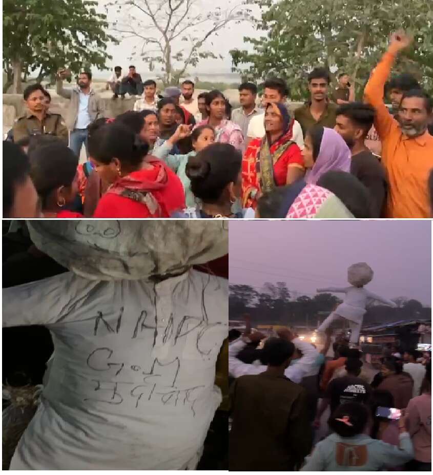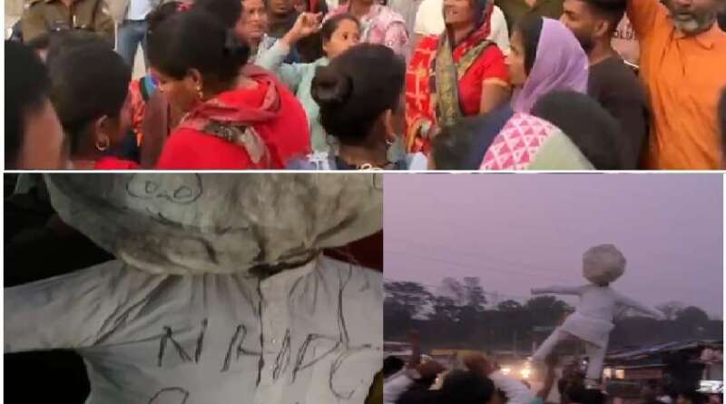 टनकपुर : अस्थाई दुकानें लगाने की अनुमति न मिलने पर गुस्साए व्यापारियों ने एनएसपीसी जीएम ऋषि रंजन का पुतला फूंका