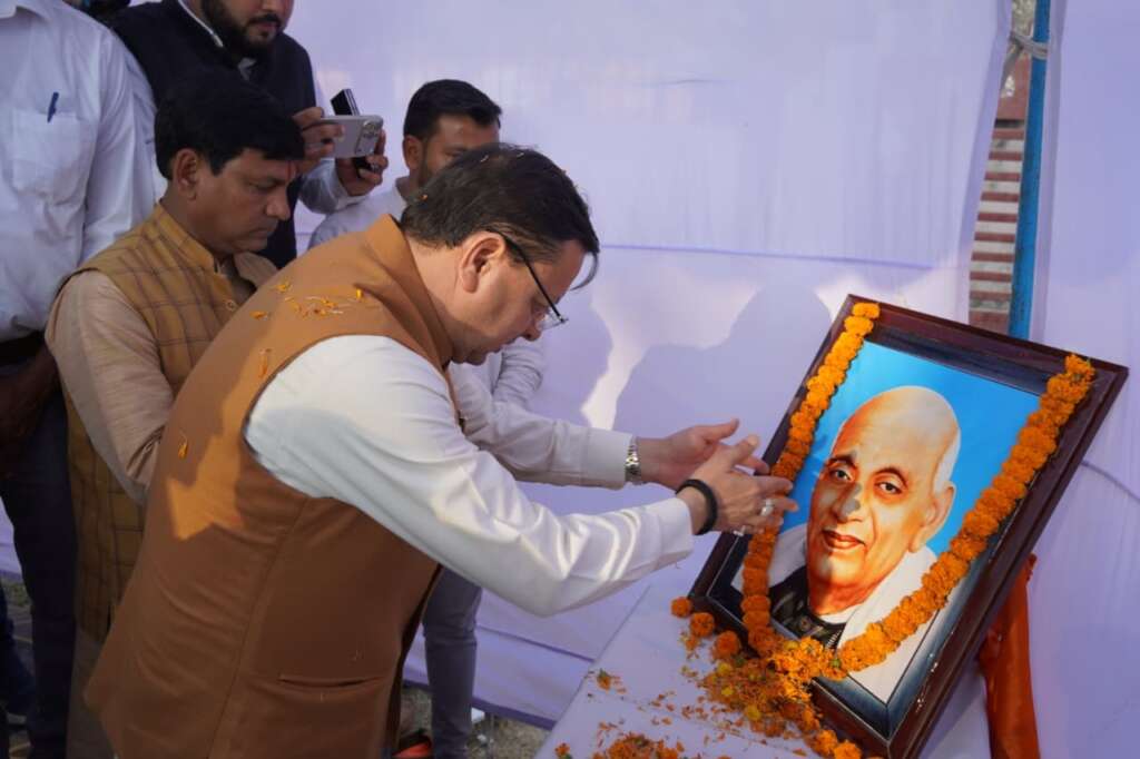 डिग्री कॉलेज में आयोजित कार्यक्रम में मुख्यमंत्री धामी ने सरदार पटेल की प्रतिमा पर पुष्प अर्पित कर श्रद्धांजलि दी और उपस्थित जनसमूह को संबोधित करते हुए कहा कि ‘सरदार वल्लभभाई पटेल भारत की एकता, अखंडता और दृढ़ संकल्प के प्रतीक हैं। स्वतंत्रता संग्राम में उनका योगदान और देश की रियासतों के एकीकरण में उनकी भूमिका सदैव स्मरणीय रहेगी, जो नवजवानों को सदैव प्रेरित करती रहेगी।’ मुख्यमंत्री ने कहा सरदार पटेल के जीवन से हमें राष्ट्रहित में समर्पण, अनुशासन और एकता का प्रेरणादायक संदेश मिलता है। उन्होंने इस अवसर पर सभी को ‘नशा मुक्त भारत निर्माण’ का सामूहिक संकल्प भी दिलाया।