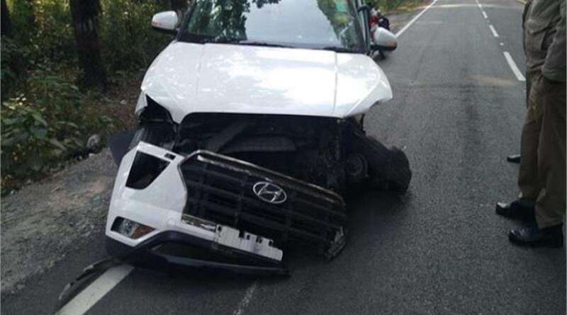 अनियंत्रित होकर कार क्रैश बैरियर से टकराई, मची अफरा-तफरी