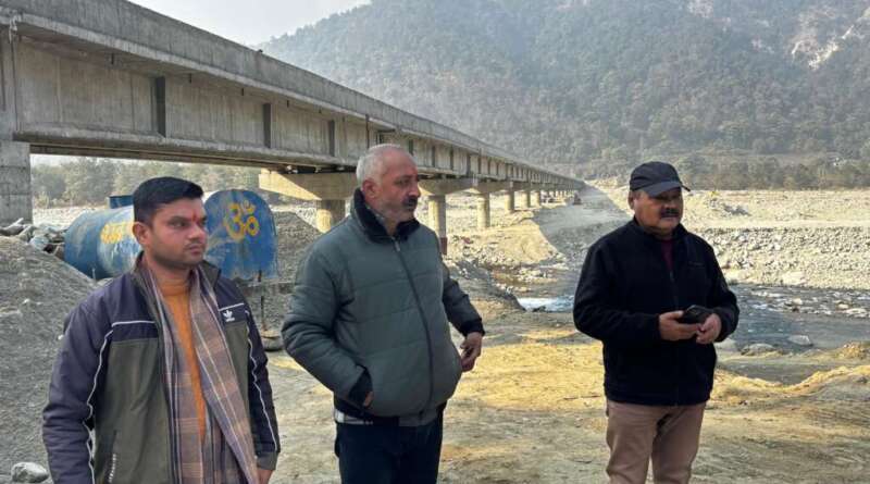 टनकपुर : टीजे रोड पर लधिया नदी में बन रहे पुल का सीएम कैंप कार्यालय के नोडल अधिकारी ने किया निरीक्षण