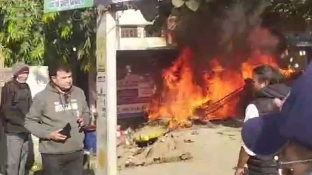 हिंदूवादी संगठनों ने बाजार बंद कराई, रोडवेज बस अड्डे के समीप कुछ दुकानों को किया आग के हवाले