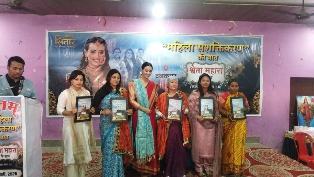 टनकपुर/चम्पावत। नगरपालिका सभागार में शनिवार को आयोजित महिला सशक्तिकरण कार्यक्रम में उत्तराखंड की मशहूर कलाकार श्वेता माहरा ने शिरकत की। कार्यक्रम में बड़ी संख्या में महिलाओं, युवाओं और गणमान्य लोगों की उपस्थिति रही। कार्यक्रम के दौरान अपने-अपने क्षेत्र में उत्कृष्ट कार्य करने वाली पांच महिलाओं को सम्मानित किया गया। ई-रिक्शा चलाकर आत्मनिर्भरता की मिसाल पेश करने वाली गौरी देवी, पर्यावरण संरक्षण के क्षेत्र में सक्रिय भूमिका निभाने वाली दीपा देवी, पारंपरिक ऐपन कला को बढ़ावा देने वाली कनिका ठाकुर, समाजसेवा के क्षेत्र में उल्लेखनीय कार्य करने वाली उर्मिला चंद तथा अधिवक्ता के रूप में महिलाओं के अधिकारों की आवाज बुलंद करने वाली एडवोकेट ऋतु सिंह को मंच पर सम्मानित किया गया।