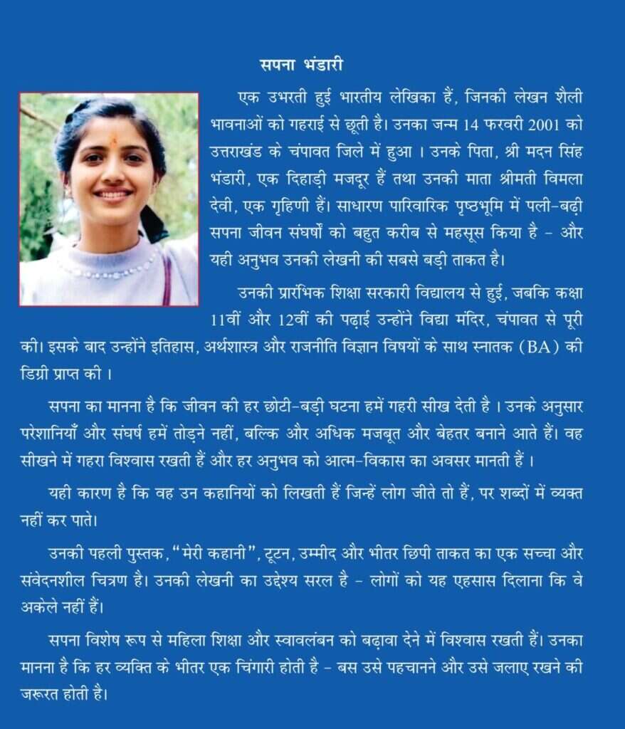 युवा लेखिका सपना भंडारी की पुस्तक ‘मेरी कहानी’ का 4 मई को होगा विमोचन